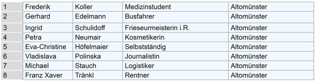 Bezahlbarer Wohnraum für Einheimische und verlässliche Kinderbetreuung. Erleichterungen für Familien im Außenbereich beim Bauen, Umbauen und Erweitern von Wohnraum. Unterstützung gemeindeansässiger Handwerks-, Landwirtschafts- und Gewerbebetriebe, damit Wertschöpfung und Arbeitsplätze vor Ort bleiben.